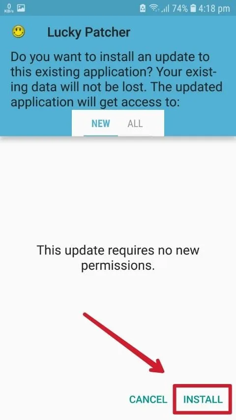 - وإن كان اسم التطبيق باللون الأخضر، فهذه إشارة على أن لوكي باتشر جاهز لتهكير التطبيق بدون الحاجة إلى روت.
